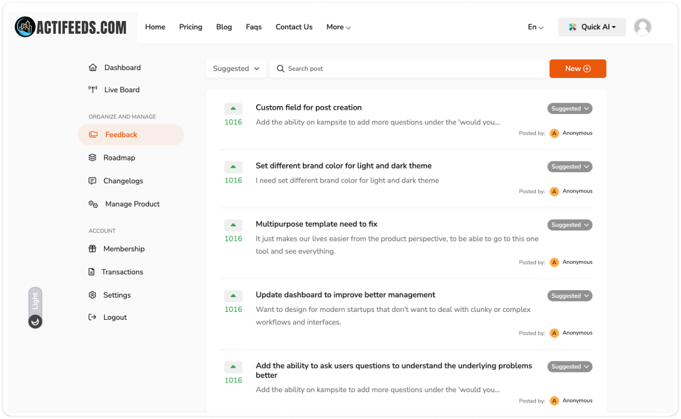 Reporting and Analytics: Actifeeds.com likely provides dashboards and reports that summarize customer feedback. These tools help businesses identify trends and patterns, eliminating the need for manual analysis of individual responses.